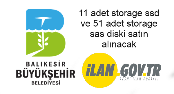 Balıkesir Büyükşehir Belediye Başkanlığı tarafından 11 adet storage ssd ve 51 adet storage sas diski satın alınacaktır.