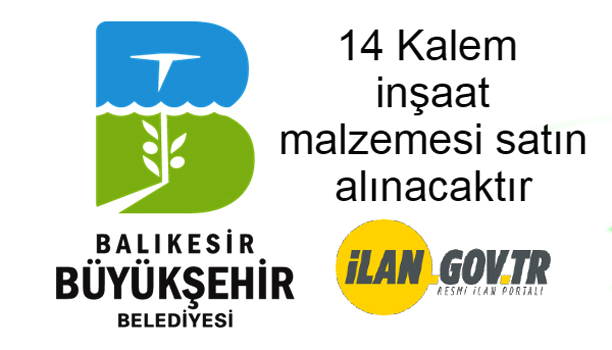 Balıkesir Büyükşehir Belediye Başkanlığı tarafından 14 Kalem inşaat malzemesi satın alınacaktır.