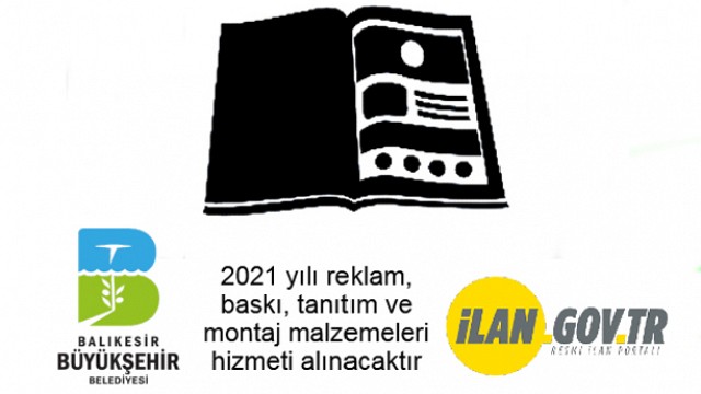 Balıkesir Büyükşehir Belediyesi tarafından 2021 yılı reklam, baskı, tanıtım ve montaj malzemeleri hizmeti alınacaktır.