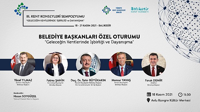 3. Kent Konseyleri Sempozyumu; “Geleceğin Kentlerinde İşbirliği ve Dayanışma” temasıyla Balıkesir Kent Konseyi ev sahipliğinde, 18 – 21 Kasım tarihleri arasında gerçekleştirilecek. Balıkesir Büyükşehir Belediyesinden konuyla ilgili olarak yapılan basın açıklamasında şöyle denildi: Balıkesir Kent Konseyi; 18 – 21 Kasım tarihleri arasında “Geleceğin Kentlerinde İş birliği ve Dayanışma” ana temasıyla düzenlenecek olan 3. Kent Konseyleri Sempozyumu’na ev sahipliği yapacak. 25 akademik oturum, 100 sözlü bildiri sunumu, konferans, panel ve sosyal etkinlikleri içeren Sempozyum; 18 Kasım Perşembe günü Avlu Kongre ve Kültür Merkezi’nde saat 10.00’da başlayacak. 350 kent konseyi başkanı ile 200’ye yakın akademisyenin yer alacağı Sempozyumda katılımcılıktan sürdürülebilir kalkınmaya, çevre ve iklim değişikliğinden göç olgusuna, kent kimliğinden kentler arasındaki dayanışmaya kadar tüm yönleriyle kent konseyleri ele alınacak. Konser ve sergilerin de yer alacağı Sempozyum kapsamında ayrıca “Belediye Başkanları Özel Oturumu” ve Türkiye Kent Konseyleri Birliği Devir Teslim Töreni gerçekleştirilecek.