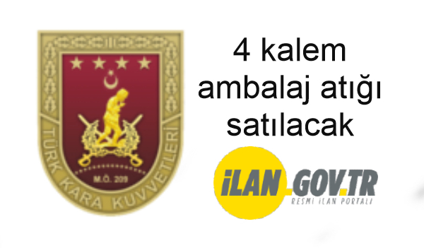 Kara Kuvvetleri Komutanlığı 19’uncu Motorlu Piyade Tugay İhale Komisyonu Başkanlığı tarafından; 19’uncu Mot.P.Tug.K.lığı Ali ÇETİNKAYA Kışlasında (Edremit) aşağıda türü ve miktarı, yazılı ‘4 KALEM AMBALAJ ATIĞI’’ 3212 Sayılı Kanunun 7‘nci Maddesi ve MSY 310-6 (B) Yönergesi kapsamında Kapalı Teklif Açık Artırma Usulüne göre satılacaktır. Detaylı bilgi için tıklayınız
