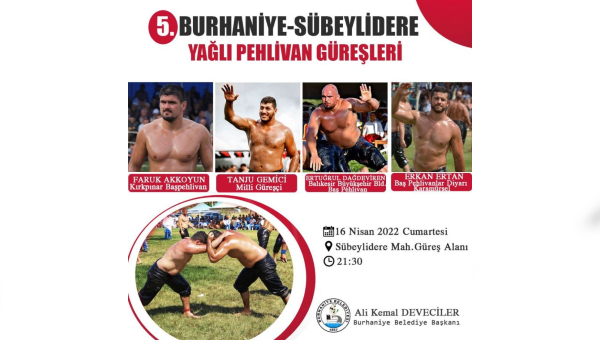 5.BURHANİYE SÜBEYLİDERE YAĞLI PEHLİVAN GÜREŞİ 16 NİSAN 2022 TARİHİNDE YAPILACAK