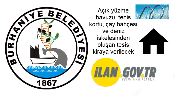 Burhaniye Belediye Başkanlığına ait; açık yüzme havuzu, iki adet tenis kortu, çay bahçesi ve deniz iskelesinden oluşan tesisin Belediye Encümeninin 12/04/2022 tarih ve 2022/276 sayılı kararı doğrultusunda, 2886 sayılı Devlet İhale Kanunun 45.maddesi çerçevesinde açık arttırma usulü ile 7 yıl süreli olarak kiralama ihalesi yapılacaktır. İhale; Burhaniye Belediyesi Encümen Toplantı Salonunda 10/05/2022 Salı günü saat 10:00’da Belediye Encümeni huzurunda yapılacaktır. Detaylı bilgi için tıklayınız