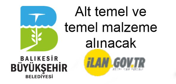 Balıkesir Büyükşehir Belediye Başkanlığı tarafından Alt temel ve temel malzeme alınacaktır.