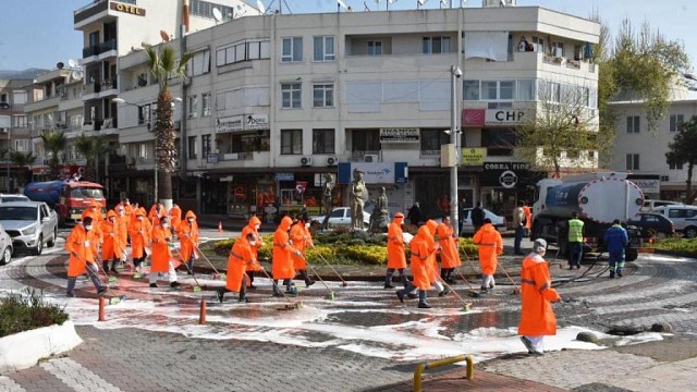 Edremit Belediyesinden yapılan basın açıklamasında şöyle denildi: Edremit Belediyesi koronavirüs önlemleri kapsamında, Altınoluk’un en işlek ana cadde ve sokaklarını köpüklü su ve solüsyonla dezenfekte etti. Temizlik İşleri Müdürlüğü ve Sağlık İşleri Müdürlüğü personellerinden oluşturulan 50 kişilik ekiple yapılan çalışmada, insan sağlığına zararsız koronavirüs üzerinde etkili dezenfekte solüsyonu ve yüzey temizleyicisi kulanılarak; Altınoluk Meydan ve çevresi, Mimar Sinan Caddesi, Atatürk Caddesi, Barbaros Caddesi ve Altınoluk Kordon’da fırçalama işlemiyle dezenfekte ve yıkama çalışması yapıldı. Edremit Belediye Başkanı Selman Hasan Başkan Arslan, koronavirüsle mücadele kapsamında belediye olarak teyakkuz halinde olduklarını kaydetti. Mevcut ekiplerin yanında özel ekipler de oluşturduklarını söyledi. Edremit İlçe merkezinde başlayıp Altınoluk’ta devam eden detaylı cadde ve sokak temizliklerinin diğer mahallelerde de devam edeceğini kaydeden Başkan Arslan, “Koronavirüsle mücadele etmek amacıyla oluşturduğumuz Hijyen timinin yanında, temizlik ve yıkama işlemleri için de özel ekip oluşturduk. Bu kapsamda koronavirüse karşı önlem oluşturması için cadde, sokak ve meydanlarda yıkama işlemlerini daha yoğun şekilde yapıyoruz. Koronavirüse karşı temizlik ve hijyen seviyesini en üst seviyeye çıkardık. Yapılan temizlikle hem koruyucu önlem alıyoruz hem de cadde ve sokaklarımızda hijyen sağlayıp temiz bir görünüme kavuşturuyoruz. Vatandaşlarımıza, zorunlu olmadıkça evlerinden çıkmamaları yönündeki tavsiyemizi tekrarlıyoruz. Lütfen siz evlerinizde kalın, biz sizlerin sağlığı için canla başla çalışıyoruz” dedi.
