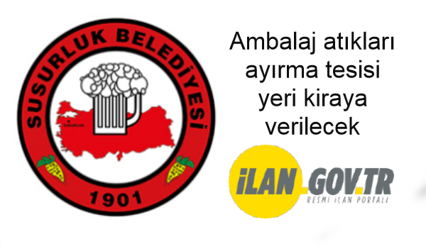 Susurluk Belediye Başkanlığı tarafından Ambalaj atıkları ayırma tesisi yeri kiraya verilecektir.