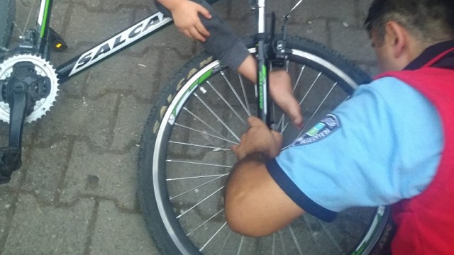Balıkesir'in Altıeylül ilçesinde bisikletin jantına ayağı sıkışan çocuk itfaiye ekiplerince kurtarıldı. Alınan bilgiye göre, Plevne Mahallesi bisikletiyle gezen 4 yaşındaki Özgür Alp Duvarcı'nın ayağı bisikletin jantına sıkıştı. Vatandaşlar çocuğun bisiklet jantına sıkışan ayağını çıkaramayınca durumu polise ve itfaiye ekiplerine bilgi verdi. Olay yerine gelen Balıkesir Büyükşehir Belediyesi İtfaiye ekipleri ve 112 Acil ekipleri 1 saat süren çalışma sonucu çocuğun ayağını janttan demir makası ile çıkardı. (İHA)
