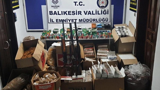 Balıkesir İl Emniyet Müdürlüğü Kaçakçılık ve Organize Suçlarla Mücadele Şube Müdürlüğü Ayvalık Kaçakçılık ve Organize Suçlarla Mücadele Grup Amirliği görevlilerince tütün ve tütün mamulleri kaçakçılığını önlemeye yönelik yapılan çalışmalar doğrultusunda; Ayvalık İlçesinde Tütün ve Tütün mamulleri suçu kapsamında (2) şüphelinin ikamet ve işyerinde yapılan aramalarda; (2) Adet ruhsatsız çifte kırma yivsiz av tüfeği, (1) Adet ruhsatsız otomatik yivsiz av tüfeği,(1) adet av tüfeği namlusu, (1.200) adet dolu kartuş, (145.000) gr kıyılmış tütün, (40.880) Adet doldurulmuş makaron, (40.000) Adet boş makaron, (1) Adet elektrikli sigara sarma makinesi ele geçirildi. Haber: Huriye AY
