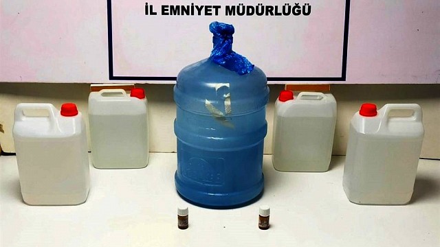 AYVALIK EMNİYETİ,15 LİTRE SAHTE EL YAPIMI ALKOL VE 20 LİTRE ETİL ALKOL ELE GEÇİRDİ!