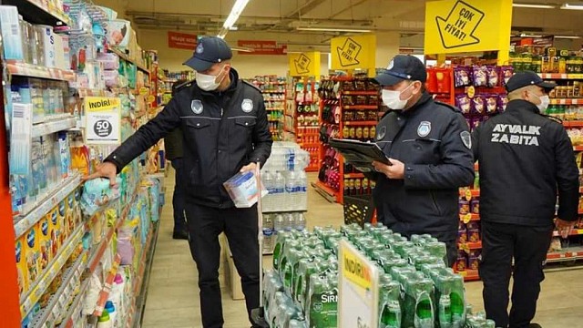 Ayvalık Belediyesi Zabıta Müdürlüğü ekipleri yılbaşı gecesi öncesi, kent merkezinden başlayarak, Cunda (Alibey) Adası, Altınova, Sarımsaklı ve Küçükköy mahallelerinde faaliyet gösteren marketlerde “6502 sayılı Tüketicinin Korunması Hakkında Kanun ve Uygulama Yönetmelikleri” gereğince denetim gerçekleştirdi. Zabıta Müdürlüğü ekipleri temel gıda ürünlerinde fahiş fiyatların önlenmesi amacıyla; marketlerde gramaj, etiket, stokçuluk ve fiyatları denetledi. Ekipler, işletmelerde gıda ürünlerinde perakende satışa arz edilen ürünlerin etiketini veya fiyat tarifesini asıp asmadıklarını, eksik gramda ürün satıp satmadıklarını ve etiketteki fiyatı ile kasa fiyatı arasında fark olup olmadığını da kontrol etti. Gıda denetimleri sırasında maske ve mesafe kuralları konusunda vatandaşı ve esnafı uyaran Zabıta ekipleri, gıda ürünlerinin üretim yeri, vergiler dahil satış fiyatı, birim fiyatı ile bu fiyatların uygulanmaya başladığı tarihin etiketlerde yer alıp almadığına dair kontrollerini de şıklaştırdı.