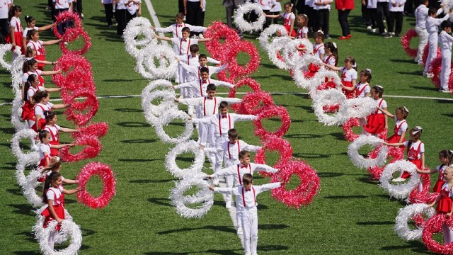 Balıkesir’in Ayvalık ilçesinde, 23 Nisan Ulusal Egemenlik ve Çocuk Bayramı düzenlenen tören ve etkinliklerle büyük bir coşku içinde kutlandı. Kutlamalar, sabah saat 09.00’da ilçe merkezindeki Cumhuriyet Meydanı’nda gerçekleştirilen çelenk sunma töreniyle başladı. Törene Ayvalık Kaymakamı Hasan Yaman, Garnizon Komutanı Personel Albay Hüseyin Aydın, Ayvalık Belediye Başkanı Mesut Ergin, İlçe Milli Eğitim Müdürü Güner Bahadır, daire amirleri, siyasi parti ve sivil toplum kuruluşlarının temsilcileri, gaziler, şehit aileleri, öğretmenler, öğrenciler ve çok sayıda vatandaş katıldı. Cumhuriyet Meydanı’ndaki programın ardından kutlamalar Hüsnü Uğural Stadyumu’nda devam etti. Stadyumdaki etkinlikler, Ayvalık Belediyesi bando takımı eşliğinde yapılan saygı duruşu ve İstiklal Marşı’nın hep birlikte okunmasıyla başladı. Günün anlam ve önemine ilişkin yapılan konuşmaların ardından, ilçedeki okullarda eğitim gören öğrenciler tarafından hazırlanan gösteriler izleyenlerden büyük beğeni topladı. Renkli görüntülere sahne olan kutlamalar, öğrencilerin katılımıyla gerçekleştirilen resmi geçit töreniyle sona erdi. (Bülten)