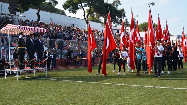 Balıkesir’in Ayvalık ilçesinde Cumhuriyet Bayramı, Hüsnü Uğural Stadyumu’nda düzenlenen coşkulu bir törenle kutlandı. 28 Ekim günü ilçe merkezindeki Cumhuriyet Meydanı’nda Ayvalık Kaymakamı Gökhan Görgülüarslan’ın öncülüğünde Atatürk anıtına çelenk sunumuyla gerçekleşen törenle başlayan Cumhuriyet Bayramı heyecanı, 29 Ekim günü de aynı coşku ile sürdü. Ayvalık’taki kutlamaların ilk etabında Kaymakamı Gökhan Görgülüarslan makamında tebrikleri kabul etti. Ardından Hüsnü Uğural Stadyumu’nda yapılan tören; Kaymakam Görgülüarslan, Garnizon Komutanı Albay Fevzi Koyuncu ve Belediye Başkanı Mesut Ergin’in vatandaşları selamlamasıyla başladı. Ayvalık Belediye Bandosu’nun işaretiyle yapılan saygı duruşunun ardından İstiklal Marşı ile devam eden törende; günün anlam ve önemine ilişkin konuşmayı yapan Kaymakam Gökhan Görgülüarslan, “Cumhuriyet; milletimizin birlik ve beraberlik içerisinde hareket ettiğinde neler yapabildiğinin, neler yapılabileceğinin en büyük kanıtıdır. Öyle ki bundan tam 96 yıl önce bu millet, büyük bir yokluk, kuşatılmışlık ve yalnızlık içerisindeyken büyük Ata’sının önderliğinde, dünya tarihinde eşine ender rastlanan büyük bir destan yazmış, tüm bu zorluklara göğüs germiş, ülkesine, mukaddesatına, onuruna, dünyaya efsanevi olarak az görülür bir mücadeleyle, en değerli varlığımız Cumhuriyetimizi kurmuştur. Bu genç Türkiye Cumhuriyeti de, erişmesini kesintisiz sürdürerek, adım adım bu günlere gelmiştir. Bu cumhuriyetin, bizim için ifade ettiği anlam sadece bir yönetim şekli değildir. Cumhuriyet, bizler için aynı zamanda tarihimizin en önemli ve en kapsamlı çağdaşlaşma biçimdir. Onun içindir ki bizler; aydınlanmanın, çağdaşlaşmanın ve sosyo-ekonomik gelişmelerin tüm nimetlerini, Cumhuriyet değerleriyle elde etmişizdir. Yine bizler, cumhuriyetle birlikte uygar toplumlar arasına girmişizdir. Onun içindir k bugün ülkemizde herkes hürdür, özgürdür ve herkes birinci sınıf vatandaştır.”diye konuştu. Türk Milleti’nin varlığına kastedenle karşı verdiği Kurtuluş Savaşı’nı zaferle bitirmiş ve Cumhuriyet ile tarih sahnesinde yeniden vücut bulduğunu hatırlatarak, “Bu haliyle Cumhuriyet, Büyük Atatürk’ün gerçekleştirdiği en büyük devrim, milli tarihimizin kaydettiği çok büyük bir atılımdır. 29 Ekim 1923’de bu büyük millet, sadece bir rejim değişikliği yapmamış, aynı zamanda milli bir devlet de kurmuştur. Büyük Türk Milleti Kurtuluş Savaşı ile düşmandan, Cumhuriyet ile de çağ dışı kalmış kurumlara bağlılıktan kurtulmuştur. Yine bu aziz millet bu sayede tebalıktan çıkarak eşit haklara sahip vatandaşlardan oluşan çağdaş bir toplumun bireyi haline gelmiştir. Bu şekliyle vatandaşımız, devletinin yegane ve gerçek sahibi olmuştur” dedi. Ayvalık Kaymakamı Gökhan Görgülüarslan’ın konuşmasının ardından, Cumhuriyet kros yarışması ve akabinde de dereceye giren öğrencilere Ayvalık Kaymakamı Gökhan Görgülüarslan, Garnizon Komutanı Albay Fevzi Koyuncu ve Ayvalık Belediye Başkanı Mesut Ergin tarafından ödülleri verildi. Tören; Atatürk Anadolu Lisesi öğrencilerinin görkemli gösterimleri ve öğrencilerin oluşturduğu dev Türkiye Haritası figürünü ortaya çıkarmasının ardından İlçe Milli Eğitim Müdürlüğü’nün halk oyunları topluluklarının folklorcuların gösterileri ile sona erdi. (İHA)