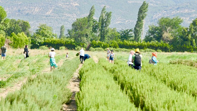 Aromatik bitki bahçelerinde hem çekim hem de hasat yapıldı