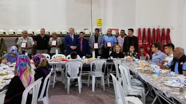 Balıkesir Büyükşehir Belediyesi İtfaiye Daire Başkanı Halil Yılmaz, itfaiyecilerin her zaman her türlü olaya karşı hazır olduğunu belirtti. Edremit İtfaiye Grup Amiri Fatih Asar’ın ev sahipliğinde İtfaiye Amirlik binasında geleneksel hale getirilen iftar yemeğinin ikincisine, Balıkesir Büyükşehir İtfaiye Daire Başkanı Halil Yılmaz, Müdahale ve AFKOM Şube Müdürü Hüseyin Kurt, Havran itfaiye Amiri Murat Oyar, Burhaniye İtfaiye Amiri Sami Yörüker, Gömeç itfaiye Amiri Hikmet Kapçak ve Ayvalık İtfaiye Amiri Murat Turgut itfaiyeciler ve aileleri ile birlikte katıldılar. İtfaiyeciler ikinci kez ailece iftar yaparak oruç açmanın mutluluğunu yaşadılar. İftar yemeğinde uzun yıllar bu mesleğe gönül veren ve emekli olan 3 personelden Ahmet Karakoç, Sadettin Baltacı ve Cemalettin Özcan ile yılın itfaiyecisi seçilen İbrahim Yağlı’ya teşekkür plaketi ve hediyeleri Büyükşehir Belediyesi İtfaiye Daire Başkanı Halil Yılmaz ve diğer yetkililer tarafından verildi. Büyükşehir Belediyesi İtfaiye Daire Başkanı Halil Yılmaz, “Tutulan oruçların ve ibadetlerimizin kabul olmasını diliyorum. Çok güçlü bir teşkilatız. Herkes ailesiyle sahur yaparken itfaiye ekipleri olası bir tehlikeye hazır vaziyette sahurlarını iftarlarını istasyonda yapıyor. Bu itfaiyeci kardeşlerimizin hepsi birer kahramandır. Her türlü canlı ve bazen küçük çocuğun bazen bir yaşlının imdadına koşan insanlarız. İtfaiyecilerimizin aileleri de birer gönüllü itfaiyecidir. Sürekli tetikte bekleyen personelimiz büyük özveri strese ve güvene dayalı bir hizmet veriyor. Balıkesir geneli İtfaiye teşkilatımızla gurur duyuyorum.”dedi Edremit İtfaiye Grup Amiri Fatih Asar’da “Bu güzel akşamda bizleri yanlız bırakmayan başkanımıza şube müdürümüze, grup amirlerimize, Edremit personelimize ve ailelerine teşekkür ederim.” dedi. İtfaiyeciler’de bu mübarek ayda çalıştıkları ortamda aileleri ile birlikte olmalarını sağlayan amir ve yetkililere minnettar olduklarını ifade ettiler. (İHA)