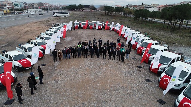 Balıkesir Büyükşehir Belediye Başkanı Yücel Yılmaz’ın ‘ilçelere eşit hizmet vereceğiz’ prensibiyle hareket eden Balıkesir Büyükşehir Belediyesi; haşere ilaçlama ve koronavirüs dezenfeksiyon işlemlerinde kullanılması amacıyla ilçe belediyelerine; 50 araç, 40 Pülverizatörlü ULV, 10 Mist Blower, 20 Kanal Sisleme Cihazı ve biyosidal ürün dağıttı. Balıkesir Büyükşehir Belediyesi, haşereyle mücadele ve koronavirüs dezenfeksiyon işlemlerini ilçe belediyeleriyle koordineli bir şekilde sürdürmeye devam ediyor. İmzalanan işbirliği protokolü kapsamında Balıkesir Büyükşehir Belediye Başkanı Yücel Yılmaz’ın özverisiyle Büyükşehir Belediyesi, ilçe belediyelerine; araç, ekipman ve biyosidal ürün desteğinde bulunuyor. Bu kapsamda, Büyükşehir Belediyesi Çevre Koruma ve Kontrol Dairesi Başkanlığı tarafından ilçe belediyelerine; 50 araç, 40 Pülverizatörlü ULV, 10 Mist Blower, 20 Kanal Sisleme Cihazı dağıtımı; Büyükşehir Belediye Başkanvekili Yasin Sağay, Genel Sekreter Yardımcısı Hüseyin Turan, Çevre Koruma ve Kontrol Dairesi Başkanı Vehbi Yörük ile ilçe belediyelerinin ilgili müdürlerinin katılımlarıyla gerçekleştirildi.