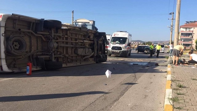 Balıkesir'de otobüs ile otomobilin çarpışması sonucu meydana gelen trafik kazasında 1 kişi öldü, 12 yaralandı. Can pazarının yaşandığı kaza anbean güvenlik kamerasına yansıdı. Kaza, Mimar Sinan Caddesi ile Serkan Caddesi'nin kesiştiği noktada meydana geldi. Vedat Avcı idaresindeki 10 R 3031 plakalı otobüs ile Burcu Günal idaresindeki 10 DAG 18 plakalı otomobil çarpıştı. Kazada otobüs yola devrilirken yolculardan bazıları da yola savruldu. Can pazarının yaşandığı kaza sonrasında durumun bildirilmesi üzerine olay yerine çok sayıda sağlık ekibi sevk edildi. Kazada Macit Mehmet (44) isimli şahıs ise hayatını kaybetti, 12 kişi yaralandı. Yaralılar çevredeki hastanelere sevk edilirken kazayla ilgili soruşturmanın sürdüğü öğrenildi. Öte yandan can pazarının yaşandığı kazanın güvenlik kamera görüntüleri ortaya çıktı.