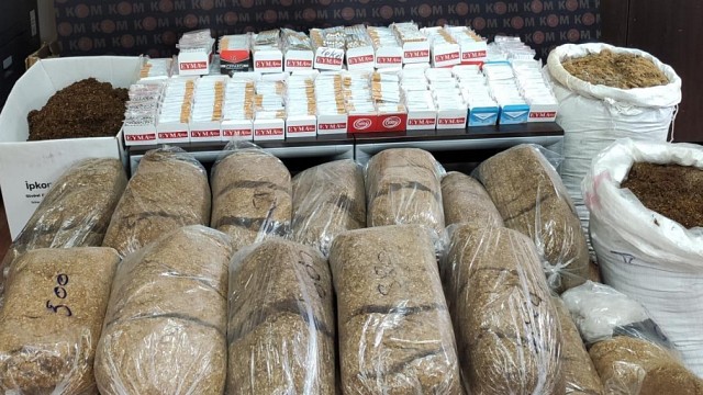 Balıkesir Emniyet Müdürlüğü Kaçakçılık ve Organize Suçlarla Mücadele Şube Müdürlüğü, Bandırma, Edremit ve Ayvalık KOM Grup Amirliği ekipleri tarafından Balıkesir'de 'Duman 9' operasyonu yapıldı. Ekiplerce "tablacı", "tütüncü", "tobacco shop" gibi isimler altında faaliyet gösteren iş yerlerinde arama ve denetimler yapıldı. Aramalarda 4 adet puro, 25.500 dolu makaron, 400 adet boş makaron, 275 kg kıyılmış tütün, 45 adet sigara sarma makinesi, 48.000 adet sigara sarma kağıdı, 50 kilogram nargile kömürü ve 13 adet sahte bandrol ele geçirildi. 10 şüpheli şahıs ile ilgili işlemler devam etmektedir. Haber: Pervin BÖLÜKBAŞI