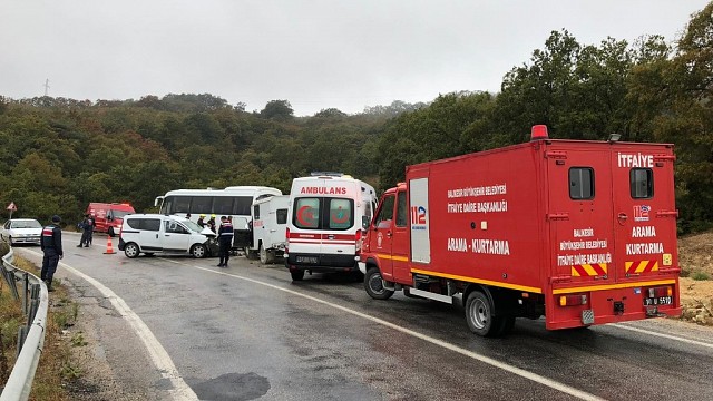 Balıkesir'in Balya ilçesinde 2 aracın karıştığı trafik kazasında 5 kişi yaralandı. Edinilen bilgiye göre, Balıkesir Balya karayolunun Çakallar mahallesi girişinde meydana gelen trafik kazasında 35 KB 2015 ve 34 DE 5314 plakalı araçlar karşılıklı kazaya karıştı. Trafik kazasında 34 de 5314 plakalı aracın sürücüsü Ferhat T. ile 35 KB 2015 plakalı araçta bulunan Yahya K., İsmet A., Bülent K. ve Mevlit A. yaralı olarak 112 ekiplerine teslim edildi. Kazaya Balıkesir Büyükşehir Belediyesi İvrindi ve Balya İtfaiye ekipleri müdahale etti. Trafik kazası sonrası yol trafiğe kapandı. İtfaiye ekiplerinin çalışması sonucu araçlar yoldan çekilerek, yol araç trafiğine açıldı. Jandarmanın trafik kazası ile ilgili soruşturmaya başladı öğrenildi. (İHA)