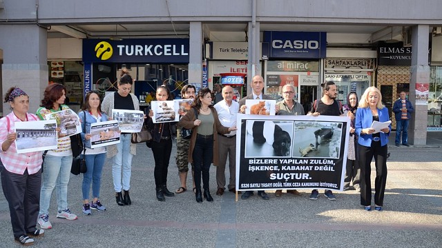 Balıkesir Doğayı Hayvanları Koruma ve Yaşatma Derneği 4 Ekim Dünya Hayvan Hakları Günü dolayısıyla basın açıklaması yaptı. Dernek Başkanı Belkıs Biçer hayvanlara zarar verenlere Türk Ceza Kanunu kapsamında ceza verilmesini istedi. DOHAYKO Başkanı Belkıs Biçer, Balıkesir Ali Hikmet Paşa Meydanında yaptığı açıklamada gelişmiş ülkelerde 86 yıl önce 4 Ekim Dünya Hayvanlar Günü olarak kutlanmakta olduğunu hatırlatarak, “Fakat bizler ne yazık ki ülkemizde gelişmiş ülkeler gibi kutlayamadığımızdan içimizde, yüreğimizde hüzün, acı, umutsuzluk ve burukluk var. 2004 yılında TBMM’de kabul edilen 5199 Sayılı Hayvanları Koruma Kanunu yürürlüğe girmesine rağmen bugüne kadar hayvanların yaşam hakları korunamadığı gibi, tam aksine şiddeti ve katliamları daha da artırdığını görmekteyiz. Ülkemiz gelişmiş ülkelere göre hayvan hakları konusunda yetersiz. Neredeyse her gün aşırı hayvan ihlalleri, şiddet ve ölüm olayları gündeme gelmektedir. Toplumumuzda hayvanlara karşı suç işlemek kronik bir hal almış. Hayvanların yaşam hakkı en temel haktır. Hayvanlara eziyet eden, işkence eden, canına kasteden kişi veya kişiler Türk Ceza Kanunu kapsamına alınmadığından hapis cezasıyla yargılanamıyor. Bu konuda yasalarımız ve uygulamalarımız yetersiz kalıyor. Biz hayvan hakları savunucuları aslında bu kelime bile ülkemize yakışmayan bir tabir. Üstelik doğanın hassas üç ayağını meydana getiren insan, hayvan ve bitki bütünlüğünün bir parçası olduğunun farkında değiliz. Özellikle bizlere; o kadar aç insan varken neden hayvanlarla uğraşıyorsunuz kıyaslaması yapanlar var. Halbuki hayvanların da duyguları, korkuları olduğunu onların da yaşayan birer canlı olduğunu unutuyoruz. Bizler her canlının hayatının korunmasının bir hak olduğunu anlatmaya çalışıyoruz” dedi. "Yetkilileri göreve davet ediyoruz" Hayvanlara zarar verenlere verilen cezaların Kabahatler Kanunundan çıkarılıp Türk Ceza Kanunu kapsamına alınması için istekte bulunan Biçer, “Sahipsiz ve sahipli hayvanların yük, binek, çiftlik hayvanlarının ve ormanda yaşam mücadelesi veren, havuzlara kapatılan yunusların; yani tüm hayvanların yaşam haklarının korunması için çıkarılan 5199 Sayılı Hayvanları Koruma Kanunu’nun gerçek anlamda uygulanmasını istiyoruz. Hayvanlara zarar verenlere verilen cezaların Kabahatler Kanunundan çıkarılıp Türk Ceza Kanunu kapsamına alınması için tüm yetkilileri göreve davet ediyoruz. Özellikle seçimden öncesi Cumhurbaşkanımız Recep Tayyip Erdoğan meydanlarda hayvanların yasasını Türk Ceza Kanunu kapsamına alacağı sözünü vermişti. Başka acılar yaşamadan bir an önce hayvanlara zarar verenlere verilecek cezaların TCK’ya alınması için buradan Cumhurbaşkanımıza ve milletvekillerimize sesleniyoruz. Lütfen sesimizi duyun” şeklinde konuştu. (İHA)