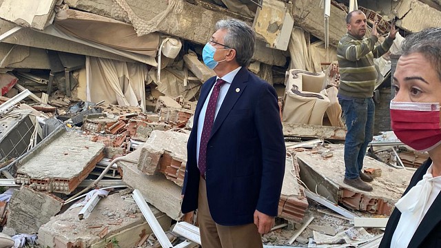 BAŞKAN ARSLAN, İZMİR'DE DEPREM BÖLGESİNDE
