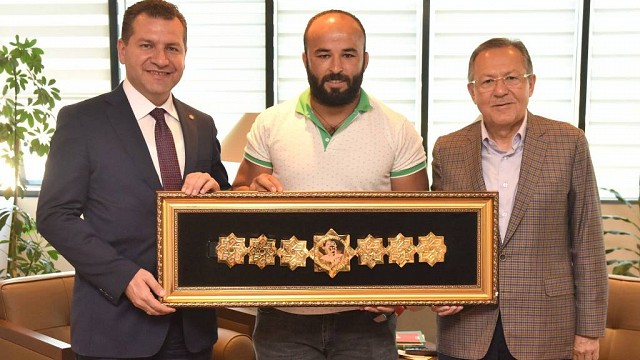 Kurtdereli Yağlı Güreşlerinde üç kez üst üste başpehlivanlık elde eden Orhan Okulu, ebedi sahibi olduğu altın kemerini Balıkesir Büyükşehir Belediye Başkanı Ahmet Edip Uğur’dan teslim aldı. Güreşçiyi tebrik eden Başkan Uğur, yağlı güreşlere desteklerinin süreceğini söyledi. KURTDERE BAŞPEHLİVANI ALTIN KEMERİNİ ALDI Kurtdereli Yağlı Güreşlerinde üç kez üst üste başpehlivanlık elde eden Orhan Okulu, ebedi sahibi olduğu altın kemerini Balıkesir Büyükşehir Belediye Başkanı Ahmet Edip Uğur’dan teslim aldı. Büyükşehir Belediyesi’nde düzenlenen törene Karesi Belediye Başkanı Yücel Yılmaz, Büyükşehir Belediyespor Kulüp Başkanı Yusuf Hocaoğlu, meclis üyeleri ve daire başkanları katıldı. Başarısından dolayı Başpehlivan Orhan Okulu’yu tebrik eden Başkan Uğur, yağlı güreşleri dünyaya tanıtmak istediklerini söyledi. Başkanlığını yaptığı yağlı Güreş Düzenleyen Kentler Birliği ile yağlı güreşlere düzen, kaide ve yeni bir soluk getirmek istediklerini ifade eden Başkan Uğur, Okulu’nun başarılarının devamını diledi. Tören sonunda Başkan Uğur ve Karesi Belediye Başkanı Yücel Yılmaz, Okulu’ya altın kemeri teslim ettiler. Başkan Uğur’a teşekkür eden Okulu’da Kurtdereli Güreşlerinin önemli bir gelişim kaydettiğini ve düzenlenen diğer güreş etkinliklerine örnek olması gerektiğini söyledi.