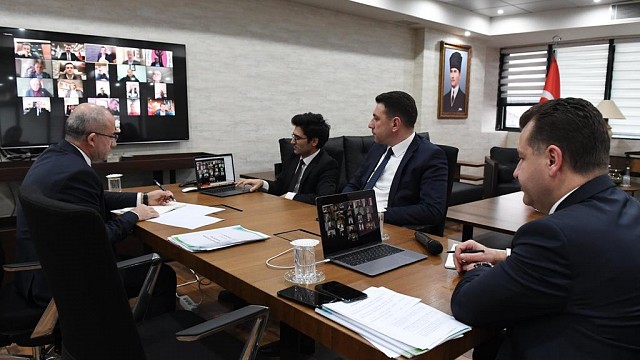 Vali Ersin Yazıcı ile birlikte oda, borsa, kooperatif ve birlik başkanlarıyla video konferans aracılığıyla bir görüşme gerçekleştiren Büyükşehir Belediye Başkanı Yücel Yılmaz, Balıkesir’in üretmeye devam etmesi için gereken her türlü tedbiri aldıklarını ifade ederek “Herkes müsterih olsun.” dedi. Balıkesir Büyükşehir Belediye Başkanı Yücel Yılmaz; Vali Ersin Yazıcı, oda, borsa, kooperatif ve birlik başkanları ile koronavirüs gündemiyle video konferans aracılığıyla görüşme gerçekleştirdi. Balıkesir'in birbirine yeterek, bu süreci güçlü bir şekilde atlatmasını istediklerini ve bunun için gayret ettiklerini söyleyen Başkan Yılmaz, talep, öneri ve beklentileri dinledi, not aldı. Vali Ersin Yazıcı ise şehir olarak bu süreçte alınması gereken tüm tedbirleri aldıklarını ifade etti.