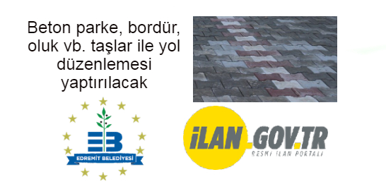 Burhaniye Belediye Başkanlığı tarafından Beton parke, bordür, oluk vb. taşlar ile yol düzenlemesi yaptırılacaktır.