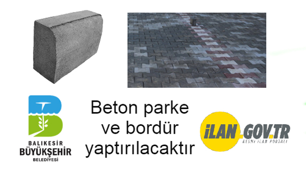 Balıkesir Büyükşehir Belediye Başkanlığı tarafından Beton parke ve bordür yaptırılacaktır.