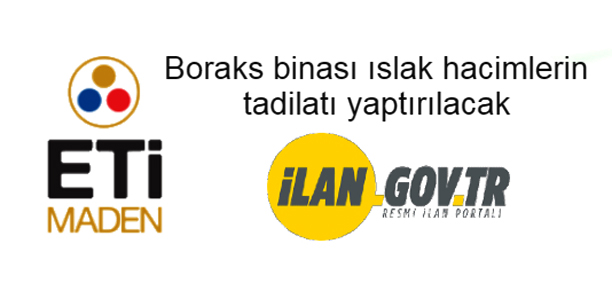 ETİ Maden Bandırma Bor ve Asit Fabrikaları İşletme Müdürlüğü tarafından Boraks binası ıslak hacimlerin tadilatı yaptırılacaktır.