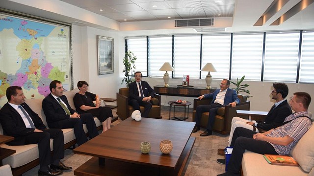 Balıkesir Büyükşehir Belediye Başkanı Ahmet Edip Uğur ve Karesi Belediye Başkanı Yücel Yılmaz, Srebrenitsa Katliamı'nın 22. yıldönümünde Bosna Hersek Arşivler Direktörü Merhum Aliya İzzetbegoviç'in Başdanışmanı Prof. Dr. Adamir Jerkoviç ile AB Politikaları Enstitüsü Başkanı Hasan Soygüzel'i konuk etti. 11 Temmuz 1995 yılında, Birleşmiş Milletler'in "güvenli bölge" ilan ettiği Srebrenitsa'da gerçekleştirilen "Srebrenitsa Katliamı"nın 22. yıldönümünü nedeniyle düzenlenen anma programlarına katılmak için ilimize gelen AB Politikaları Enstitüsü Başkanı Hasan Soygüzel ve Bosna Hersek Arşivler Direktörü ve Merhum Aliya İzzetbegoviç'in Başdanışmanı Prof. Dr. Adamir Jerkoviç; Balıkesir Büyükşehir Belediye Başkanı Ahmet Edip Uğur ve Karesi Belediye Başkanı Yücel Yılmaz'ı ziyaret etti. BAŞKANLARA ZİYARET Balıkesir Büyükşehir Belediyesi, Karesi Belediyesi ve Bosna Hersek Federasyonu Arşivi ev sahipliğinde Srebrenitsa Katliamı'nın 22. yıldönümünde gerçekleştirilen "Srebrenitsa Cehennemi" adlı sergi ile "Aliya İzeetbegoviç'i Yeniden Tanımak" konferansına katılmak için ilimize gelen AB Politikaları Enstitüsü Başkanı Hasan Soygüzel ve Bosna Hersek Arşivler Direktörü ve Merhum Aliya İzzetbegoviç'in Başsanışmanı Prof. Dr. Adamir Jerkoviç, Balıkesir Büyükşehir Belediye Başkanı Ahmet Edip Uğur ve Karesi Belediye Başkanı Yücel Yılmaz'ı ziyaret etti. UNUTMAYACAĞIZ, UNUTTURMAYACAĞIZ İlk olarak Karesi Belediye Başkanı Yücel Yılmaz'ı ziyaret eden Prof. Dr. Adamir Jerkoviç Srebrenitsa trajedisinin 22. yılında, katliamın kurbanlarını rahmetle andıklarını, yıllardır tüm dünyaya bu korkunç insanlık suçunu ve soykırımını anlattıklarını söyledi. 8 bin 372 kişinin bir günde ve BM askerlerinin gözünün önünde katledildiğini dile getiren Jerkoviç, yaşananları asla unutmayacaklarını ve unutturmayacaklarını ifade etti. Avrupa Birliği Politikaları Enstitüsü Başkanı Hasan Soygüzel de hüzünlü bir günde Balıkesir'de, soykırımda şehit düşen Bosnalı kardeşlerimizi ve Bosna Hersek'in ilk Cumhurbaşkanı Aliya İzzetbegoviç'i anmak ve anlamak için bir araya geldiklerini kaydetti. "BİRLİKTE DÜNYAYA HAYKIRDIK" Karesi Belediye Başkanı Yücel Yılmaz, konuklarını Balıkesir'de ağırlamaktan duyduğunu memnuniyeti dile getirerek, "Son dönem insanlık tarihinin en utanç verici hadiselerinden biri olan bu katliamda hayatını kaybeden şehitlerimize Allah'tan rahmet, yakınlarına ve tüm Bosna halkına sabırlar diliyorum" dedi. Yılmaz, Bosna ve Türk halkının her zaman kardeş olduğunu belirtti, "Nasıl Bosna halkı 15 Temmuz'un ertesi sabahında Bosna'da meydanları doldurarak bizlere destek olduysa, Türkiye'nin birlik ve beraberliğini bizimle birlikte o meydandan dünyaya haykırdıysa bugün de Bosnalı kardeşlerimizin şehadetini yad etmek için birlikteyiz" dedi. "BOSNA VE TÜRKİYE KARDEŞTİR" Srebrenitsa Soykırımı'nda kadın-erkek, genç-yaşlı demeden 8 bin 372 masumun katledildiğini söyleyen Balıkesir Büyükşehir Belediye Başkanı Ahmet Edip Uğur, "Bugün Srebrenitsa Katliamı'nın yanı sıra FETÖ'nün hain darbe girişimine karşı yazdığı Türk halkının yazdığı destanın birinci yılını da anıyoruz. Bosnalı kardeşlerimizin 11 Temmuz 1995'ye yaşadığı insanlık zulmünde Türkiye nasıl onların yanında olduysa; Milletimizin 15 Temmuz'da yaşadığı zulümde de Bosnalı kardeşlerimiz bizlerin yanında oldu. Yaşanan acılar gösterdi ki Bosna ve Türkiye kardeştir" dedi.