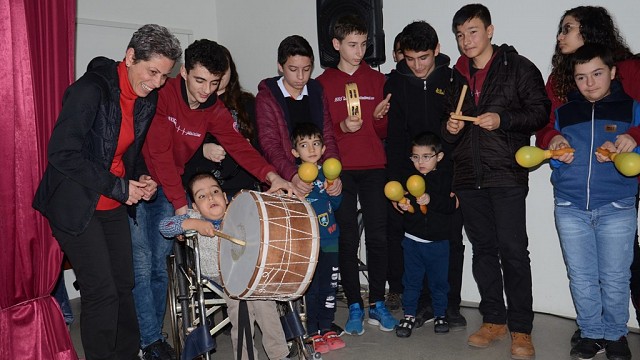 Balıkesir Lisesi öğrencileri orta ağır zihinsel engelli, otizmli ve bedensel engelli öğrencilerin eğitim aldığı merkezi ziyaret etti. Ziyarette 12 yaşındaki down sendromlu Efekan Çırak’ın zeybek oynayışı ve ritm gösterisinde darbuka çalan 8 yaşındaki bedensel orta ağır zihinsel engelli Umutcan Koyun ilgi odağı oldu. Balıkesir Lisesi öğrencileri orta ağır zihinsel engelli, otizmli ve bedensel engelli öğrencilerin eğitim aldığı Özel Eğitim Uygulama Merkezini ziyaret etti. Getirdikleri çeşitli hediyeleri minik kardeşlerine sunan liseli gençler özel öğrencilerin sınıflarında resim yapıp sohbet ettiler. Duygusal anların yaşandığı ziyarette liseli abisiyle zeybek oynayan 12 yaşındaki down sendromlu Efekan Çırak ve ritm konserinde darbuka çalan 8 yaşındaki bedensel orta ağır zihinsel engelli Umutcan Koyun ilgi odağı oldu. Sevgi Özel Eğitim Uygulama Merkezi Okul Müdürü Ahmet Hamdi Kılıç, “Bugün Balıkesir Anadolu Lisesi öğrencilerini, idarecilerini burada ağırladık. Çok güzel etkinlikler yaptık burada. Öğrencilerimizin farkına vardılar, onlarla beraber çok güzel etkinlikler yaptılar, boyamalar yaptılar. Öğrencilerimize çok güzel hediyeler getirdiler. Ayaklarına sağlık diyorum, okul müdürümüze de ayrıca teşekkür ediyorum ben burada. Öğrencilerimizin emeğine sağlık. Güzel bir etkinlik oldu. Çocuklarımızın sevinçleri gözlerinden okundu. Kendilerine tekrar teşekkür ediyorum” dedi. “Çocukların da hayat dolu olduğunu gördük” Öğrencilerine bir farkındalık kazandırmak amacıyla etkinliği düzenlediklerini belirten Balıkesir Lisesi Müdürü Mustafa Kocaşahan, “Engelli olmak bir tercih değil ama Allah vergisi dolayısıyla bunu beraber yaşıyoruz" dedi. Balıkesir Lisesi 9-F öğrencisi Türkan Sude Coşkun ise, “Bugün otizmli ve down sendromlu çocukları ziyarete geldik. Ben çok eğlendim, hepsi çok tatlılar, birbirinden neşeliler. Onlar da bizden birileri, bizden hiçbir farkları yok. Burada sevgi ile her şeyin başarılabileceğini daha rahat anladım” diye konuştu. (İHA)