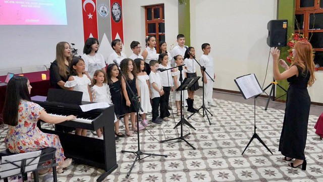 Burhaniye Belediyesi Gençlik Merkezi Müzik Sınıfı öğrencileri, yıl boyunca aldıkları eğitimi şahane bir konserle taçlandırdı. Hüsnü Pazarbaşı Kültür Merkezi’nde gerçekleşen konser, büyük beğeni topladı. Düzenlenen konsere; Burhaniye Belediye Başkanı Ali Kemal Deveciler ve eşi Nuriye Deveciler, Burhaniye Belediye Başkan Yardımcısı Ayten Tuna, Burhaniye Belediye Meclis Üyesi Esra Ersoy, Burhaniye Belediyesi Sosyal Destek Hizmetleri Müdürü Rukiye Güven Köken, öğrenci velileri ve sanatseverler katıldı. Müzik Öğretmenleri Anıl Aydınlıgil Duran ve Gözde Akderin’in öncülüğünde hazırlanan öğrenciler, yeteneklerini sahneye taşıdı. Konsere katılan sanatseverler, klasik müzikten halk ezgilerine, piyano dinletisinden ukuleleye, çok sesli koro performanslarına uzanan geniş bir repertuvarla keyifli bir gün yaşadı. Konser bitiminde konuşma gerçekleştiren Başkan Ali Kemal Deveciler, "Bugün burada sahnede izlediğimiz her bir öğrencimiz, azimlerini, emeklerini ve sanata duydukları sevgiyi bizlere başarıyla sundu. Burhaniye Belediyesi olarak, çocuklarımızın ve gençlerimizin sanatla iç içe büyümesini, kendilerini özgürce ifade edebilecekleri alanlar yaratmayı çok önemsiyoruz. Bu güzel konserin ortaya çıkmasında emeği geçen tüm öğretmenlerimize, ailelerimize ve çocuklarımıza teşekkür ediyorum." dedi. Yılsonu konseri, öğrencilerin sahne deneyimi kazanması ve sanatsal gelişimlerine katkı sağlamak amacıyla düzenlenirken, konser sonunda tüm öğrencilere katılım sertifikası takdim edildi. (Bülten)