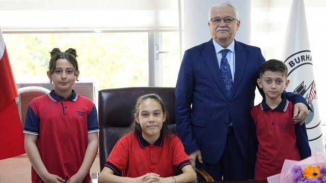 23 Nisan Ulusal Egemenlik ve Çocuk Bayramı etkinlikleri kapsamında geleneksel olarak düzenlenen, çocukların temsili olarak yönetici koltuğuna oturduğu törende, Burhaniye Belediye Başkanlığı koltuğu bu yıl Cumhuriyet İlkokulu öğrencisi İdil Özkan’a devredildi. İdil Özkan, Burhaniye Belediye Başkanı Ali Kemal Deveciler’i makamında ziyaret ederek temsili olarak başkanlık görevini devraldı. Burhaniye Belediyesi'nde görevli birim müdürleri de ziyarete katılım sağladı. Ziyaret sırasında Başkan Deveciler, İdil Özkan’ın heyecanına ortak olarak, “Evladımıza eğitim ve öğretim hayatında başarılar diliyor, gelecekte önemli görevlerde yer almasını temenni ediyorum. Bu anlamlı ziyaret için İlçe Milli Eğitim Müdürlüğümüze ve sevgili İdil Özkan’a teşekkür ediyorum. Büyük Önderimiz Gazi Mustafa Kemal Atatürk’ün çocuklara armağan ettiği 23 Nisan Ulusal Egemenlik ve Çocuk Bayramı vesilesiyle tüm çocuklarımızın bayramını en içten dileklerimle kutluyorum.” ifadelerini kullandı. Ziyaretin sonunda Burhaniye Belediye Başkanı Ali Kemal Deveciler, İdil Özkan ve beraberindeki öğrencilere çiçek ve hediye takdim etti. (Bülten)
