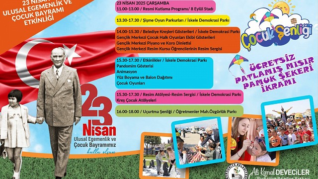 23 Nisan günü 16.00’da Öğretmenler Mahallesi Özgürlük Parkı’nda yapılacak uçurtma şenliğinde gökyüzü renklenirken çocuklar aileleriyle birlikte bayramı yaşayacaklar.