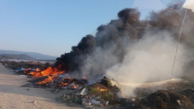 Balıkesir'in Burhaniye ilçesinde, çöplük alanda yükselen kara dumanlar itfaiyeyi harekete geçirdi. Kısa sürede olay yerine gelen itfaiye, çöplük alanda yakılan araç lastiklerine su sıkarken, vatandaşları duyarlı olmaya çağırdı. Burhaniye’de Karınca deresi kenarında bulunan çöplük alanda kara dumanların yükseldiğini gören vatandaşlar itfaiyeye haber verdi. Çöplüğe gelen itfaiye erleri yanan araç lastiklerini kısa sürede sündürdü. Çöplük yakınında bulunan Şarköy duman altında kalırken, yangına müdahale eden Üzeyir Filiz ve Uğur Bilir vatandaşları duyarlı olmaya çağırdı. İhbar üzerine geldiklerini anlatan Üzeyir Filiz, “Burada araç lastiklerini yakmışlar. Etraf duman altında kaldı. Bunlar çevre kirliliğine neden oluyor. Vatandaşları duyarlı olmaya çağırıyoruz” dedi. (İHA)