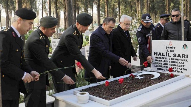 18 Mart Şehitleri Anma Günü ve Çanakkale Zaferi’nin 110. yıl dönümü Burhaniye’de yapılan çeşitli etkinliklerle kutlandı. Program, Geriş ve Börezli Mezarlığı’ndaki şehit kabirleri, Burhaniye Kaymakamı İlyas Memiş, Burhaniye Belediye Başkanı Ali Kemal Deveciler, Burhaniye İlçe Garnizon Komutanı Topçu Binbaşı Yusuf Kaya, Burhaniye İlçe Emniyet Müdürü Faik Karabaş, Burhaniye İlçe Jandarma Komutanı Binbaşı Ünal Bayhan, Burhaniye Belediye Başkan Yardımcısı Tamer Midilli, Burhaniye İlçe Gençlik ve Spor Müdürü Aslan Alparslan tarafından ziyaret edilerek şehitlerimizin kabirlerine karanfil bırakılıp, Kuran-ı Kerim ve duaların okunması ile başladı. Program, saat 10.40'da Cumhuriyet Meydanı'nda Atatürk Anıtı'na çelenklerin sunulmasıyla devam etti. Düzenlenen çelenk sunma töreninde, Burhaniye Kaymakamı İlyas Memiş, Burhaniye Belediye Başkanı Ali Kemal Deveciler, Burhaniye İlçe Garnizon Komutanı Vekili İstihbarat Yarbay Yusuf Parmaksızoğlu, Burhaniye Cumhuriyet Başsavcı Vekili Berkay Şahingöz, Burhaniye İlçe Emniyet Müdürü Faik Karabaş, Burhaniye İlçe Jandarma Komutanı Binbaşı Ünal Bayhan, şehit yakınları ve gazilerimiz, Burhaniye Belediye Başkan Yardımcıları Oktay Erbalaban, Tamer Midilli ve Ayten Tuna, CHP Burhaniye İlçe Başkanı Aylin Yıldırım, Burhaniye İlçe Milli Eğitim Müdürü Bora Zihni, Burhaniye Belediye Meclis Üyeleri Aşkıbirce Uzkurt ve Esra Ersoy, siyasi parti üyeleri, sivil toplum kuruluşlarının temsilcileri, öğretmenler ve vatandaşlar törende hazır bulundu. Kaymakamlık, İlçe Garnizon Komutanlığı ve Burhaniye Belediye Başkanlığı çelenklerinin Atatürk Anıtı'na sunulmasından ardından saygı duruşu ve İstiklal Marşı okundu. Reha Yurdakul Kültür Merkezi’nde, Burhaniye Hasan Akın Anadolu Lisesi tarafından hazırlanan program İstiklal Marşının okunmasının ardından günün anlam ve önemini belirten konuşma gerçekleşti. Çanakkale zaferini anlatan sinevizyon gösteriminin ardından öğrenciler tarafından yapılan Çanakkale Destanı Oratoryosu, koro ve günün önemli olaylarını içeren canlandırmaların ardından 18 Mart Çanakkale Zaferi ve Şehitleri Anma günü için ilçe genelindeki okullar arasında düzenlenen yarışmalarda dereceye giren öğrencilerin ödülleri protokol tarafından takdim edildi. “Çanakkale Ruhu” konulu resim yarışmasında dereceye giren Ahmet Onur Ayan, Beril Su Korkmaz, Elvin Kumkumoğlu’na ödüllerini Burhaniye Belediye Başkanı Ali Kemal Deveciler takdim etti. “Çanakkale Savaşları’nın 110. Yıl Dönümü” resim yarışmasında dereceye giren Rahime Sima Budak, Nisanur Terzioğlu, Sıla Özdemir’e ödüllerini Burhaniye Kaymakamı İlyas Memiş takdim etti. Şiir yarışmasında dereceye giren Cansu Doğa Kılıç, Sabri Korkak, Ela Çelik’e ödüllerini Burhaniye İlçe Garnizon Komutanı Vekili İstihbarat Yarbay Yusuf Parmaksızoğlu takdim etti. (Bülten)