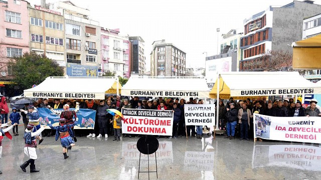 Deve Güreşleri şap hastalığı nedeniyle iptal edildi. Burhaniye İlçesi Cumhuriyet meydanında geçtiğimiz gün Akdeniz, Ege ve Marmara bölgelerinden gelen Deveciler Dernekleri tarafından bir basın açıklaması yapıldı. Burhaniye Belediye Başkanı Ali Kemal Deveciler’de basın açıklamasına; Belediye Başkan Yardımcısı Oktay Erbalaban, Belediye Meclis Başkanvekili Tarık Erdil, Belediye Meclis Üyeleri Murat Dinçer ve Yaşar Aydemir ile birlikte katılım sağladı. Başkan Deveciler yaptığı açıklamada, “Bugün Cumhuriyet Meydanı’mızda, deve güreşlerinin şap hastalığı nedeniyle iptal edilmesine ilişkin Burhaniye Deveciler Derneği öncülüğünde düzenlenen, Akdeniz, Ege ve Marmara bölgelerinden gelen deveciler dernekleri tarafından yapılan basın açıklamasına Belediye Başkan Yardımcımız Oktay Erbalaban, Belediye Meclis Başkanvekilimiz Tarık Erdil, Belediye Meclis Üyelerimiz Murat Dinçer ve Yaşar Aydemir ile birlikte katılım sağladık. Hayvan sağlığını önceleyen, kamu yararını esas alan ve geleneksel değerlerimizi koruyan bir anlayışla; bu sürecin tüm paydaşlarla sağduyu ve dayanışma içinde yürütülmesinin önemine dikkat çektik. Hem hayvanlarımızın sağlığının korunması hem de kültürel mirasımızın yaşatılması adına atılacak her adımın yanında olmaya devam edeceğiz. Birlikte, akılla ve sorumlulukla hareket etmeyi sürdüreceğiz.” Dedi. Haber: Hasan AKAR
