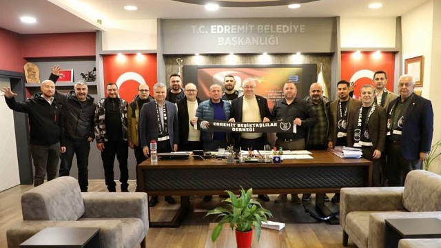 Edremit Beşiktaşlılar Derneği tarafından geçtiğimiz gün Edremit Belediye Başkanı Mehmet Ertaş'a makamında bir ziyaret gerçekleştirildi. Başkan Mehmet Ertaş ziyaretle ilgili olarak yaptığı açıklamada, "Edremit Beşiktaşlılar Derneği Başkanı Osman Geyik ve yönetimine nazik ziyaretleri nedeniyle teşekkür ediyorum." dedi. Haber: Hasan AKAR