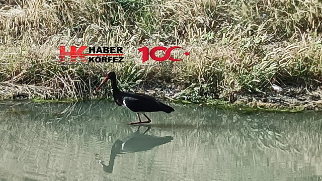 EDREMİT ÇAYINDA NADİR MİSAFİR, ‘SİYAH LEYLEK’