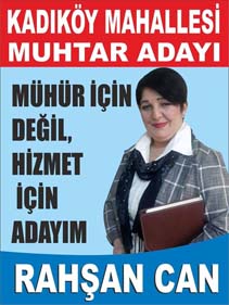 RAHŞAN CAN, Edremit İlçesi Kadıköy FATİH MAHALLESİ MUHTARLIĞI için aday oldu. Edremit İlçesi Kadıköy FATİH MAHALLESİ MUHTARLIĞI için 31 Mart 2019 Tarihi'nde yapılacak olan Mahalli İdareler Seçiminde daha önce bir dönem aynı mahalle Muhtarlığında asistan olarak görev yapan, 2 yıl Hakimiyet Gazetesi'nde de çalışmış olan evli, iki çocuk annesi, ev hanımı RAHŞAN CAN (44); "Mühür için değil, hizmet için adayım. Kadın elinin değdiği her işte başarı ve bereket vardır. Onun için Kadıköy Fatih Mahallesi Muhtarlığına aday oldum.” dedi. Haber: Ayhan KURT
