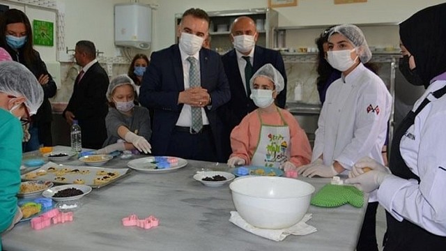 Balıkesir Valisi Hasan Şıldak’ın himayelerinde yürütülen Balıkesir Sosyal ve Kültürel Bütünleşme Projesi (BİGEP) kapsamında evde eğitim hizmeti alan öğrenciler için "Kurabiyemi Yapıyorum'' farkındalık etkinliği geçtiğimiz günlerde Edremit Yılmaz Akpınar Mesleki ve Teknik Anadolu Lisesi pastacılık atölyesinde gerçekleştirildi. Etkinlikte evde eğitim gören öğrencileri yalnız bırakmayan Edremit Kaymakamı Ahmet Odabaş, öğrenciler ve aileleriyle sohbet ederek ihtiyaçları hakkında bilgi aldı. Okul yerleşkesini gezen Kaymakam Odabaş, üretim atölyelerini ziyaret ederek çalışmalar hakkında bilgi aldı.