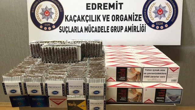 Balıkesir'in Edremit ilçesinde kaçak tütün satışı yapılan işyerine polis ekiplerince düzenlenen operasyonda çok miktarda kaçak tütün ele geçirildi. Edinilen bilgiye göre, Edremit KOM Grup Amirliği görevlilerince gümrük kaçağı sigara ticaretini önlemeye yönelik olarak yapılan çalışmalarda Ü.Y. adlı şahsın işlettiği iş yerinde 9 bin 240 adet doldurulmuş makaron, 7 bin 600 adet TAPDK bandrolü bulunmayan boş makaron ele geçirilerek gerekli adli işlemlere başlanıldı. (İHA)
