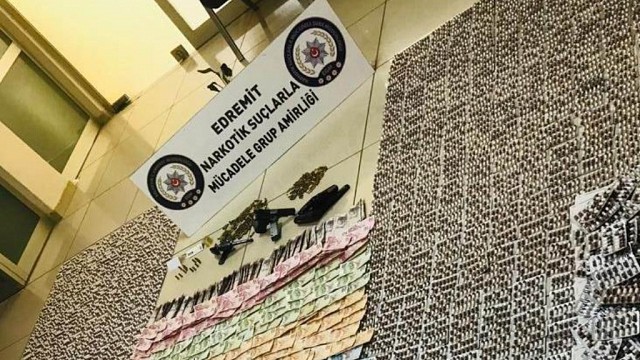Balıkesir’in Edremit ilçesinde narkotik ekiplerinin takibe alarak durdurduğu iki araçta binlerce uyuşturucu hap ve silah ele geçirdiği olayda 5 kişi tutuklandı. U.H.Ş. isimli şahsa ait 2 adet 34 plakalı araç ile uyuşturucu madde getirileceği istihbaratını alan Edremit İlçe Narkotik Suçlarla Mücadele Grup Amirliği ekipleri, araçları takibe almış, araçlarda ve şahısların ikametlerinde yapılan aramalarda 25 bin 248 adet uyuşturucu hap, 0,98 gram esrar, 1 adet uyuşturucu öğütme aparatı, 24 bin 765 TL para, 3 adet ruhsatsız tabanca, 1 adet boş şarjör, 343 adet farklı tabancalara ait mermi ele geçirilmişti. Olayla ilgili olarak M.Ş., G.Ş., U.H.Ş., O.C.K. ve M.T. gözaltına alınmıştı. Bugün adliyeye sevk edilen zanlılar, çıkarıldıkları mahkeme tarafından tutuklandı. (İHA)