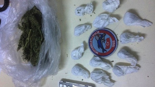 Balıkesir'in Edremit ilçesi'nde uyuşturucu kuryeliği yapan 1 kişi polis tarafından yakalandı. Edinilen bilgiye göre, Edremit İlçe Emniyet Müdürlüğü'ne bağlı Yunus ekipleri, Edremit Kışlalar Caddesi üzerinde ihbar üzerine uyuşturucu taşıdığı tespit edilen 26 yaşındaki U.P. isimli şahsın kullanımındaki 10 plakalı motosikleti durdurdu. Polislerce motosiklette yapılan aramada 55 gram esrar maddesi, satışa hazır 12 fişek esrar maddesi ile hassas terazi ele geçirildi. Uyuşturuculara Yunus ekiplerince el konulurken kuryelik yapan U.P. gözaltına alındı. (İHA)
