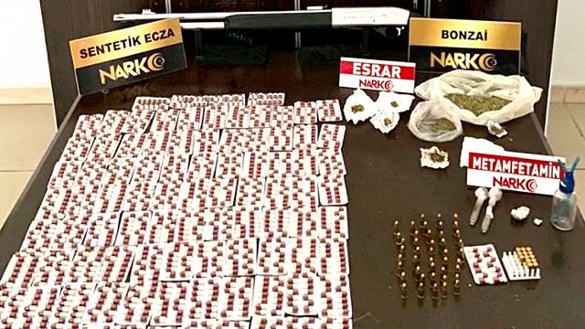 Emniyetin Uyuşturucu madde ticareti ve kullanımını önlemeye yönelik çalışmalarıaralıksız ve titizlikle devam ediyor. Edremit Cumhuriyet Başsavcılığı koordinesinde Balıkesir İl Emniyet Müdürlüğü KOM, Asayiş ve Narkotik Suçlarla Mücadele Şube Müdürlüğü görevlilerince İlimiz Edremit İlçesi İbrahimce ve Gazicelal Mahallelerinde Uyuşturucu Madde Ticareti Yaptığı bilgisi edinilen 16 şahıs ve şahıslara ait 15 adreste 22.09.2021 günü saat 05:30 sıralarında 16 ekip, 5 Özel Harekat Timi, 3 Çevik Kuvvet Timi 69 personel ve 4 Narkotik Dedektör Köpeğinin katılımıyla yapılan eş zamanlı operasyonda; İkamet bahçesinde toprağa gömülü vaziyette 1302 Adet Sentetik Ecza Hap, 2 parça halinde 3.46 Gram Metamfetamin maddesi, 3 parça halinde 3.35 Gram Esrar maddesi, 5 parça halinde 54.14 Gram Sentetik Kannobinoid (Bonzai) maddesi, 2 adet Ruhsatsız Av tüfeği, Tüfeklere ait 2 adet Kartuş, 1 adet 6136 sayılı Kanun kapsamında Bıçak, 3 adet uyuşturucu madde içiminde kullanılan aparat, 42 adet 9x19 mm çapında tabanca fişeği, 14 adet 7x65 mm çapında tabanca fişeği ele geçirildi. Konuyla ilgili 8 şahıs gözaltına alınarak adli tahkikata başlanılmıştır. Haber: Pervin BÖLÜKBAŞI