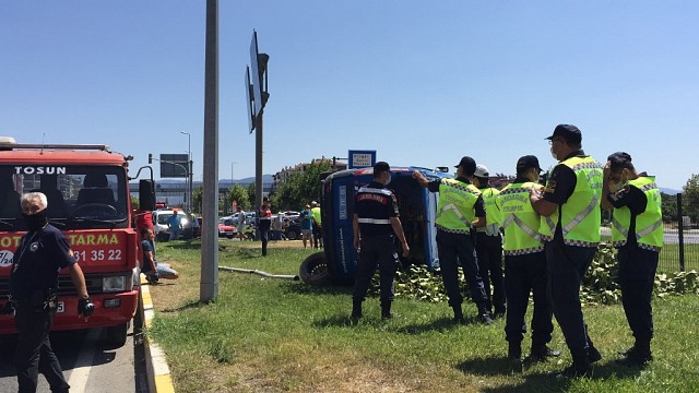 Edremit’te otomobille çarpışan jandarma minibüsü devrildi 3 yaralı
