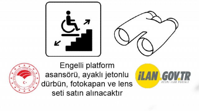 Engelli platform asansörü, ayaklı jetonlu dürbün, fotokapan ve lens seti satın alınacaktır