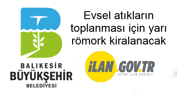 Balıkesir Büyükşehir Belediyesi evsel atıkların toplanması için yarı römork kiralayacak.