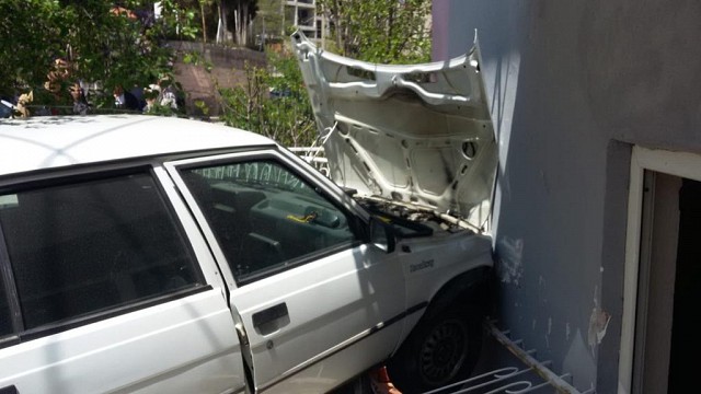 GAZ TELİ TAKILI KALAN ARAÇ DUVARA ÇARPTI