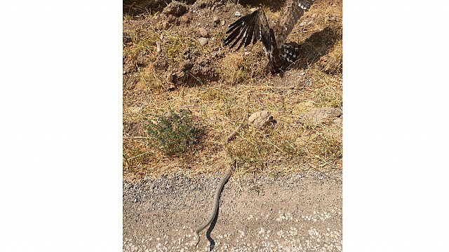 Balıkesir’in Havran ilçesinde cep telefonu ile çekilen fotoğraf belgesel çekimlerini aratmadı. Tarlabaşı önceki dönem Muhtarı İsmail Dündar, “Havran istikametinden Tarlabaşı mahallemize aracım ile seyir halindeyken kırmızı kır mevkiinde karşıma kartal çıktı. Aracımı durdurup indiğimde yılan kartal'ın boynuna dolanmış boğmaya çalışırken kartal yılanın başını ağzına alıp öldürmeye çalışıyordu. İki yırtıcı hayvanın hayatta kalma mücadelesi benim onları kovalamam ile bozuldu. Fotoğraf çekimi sonrası korkarak aracıma binip o bölgeden uzaklaştım.” dedi. ÖZEL HABER: HASAN AKAR